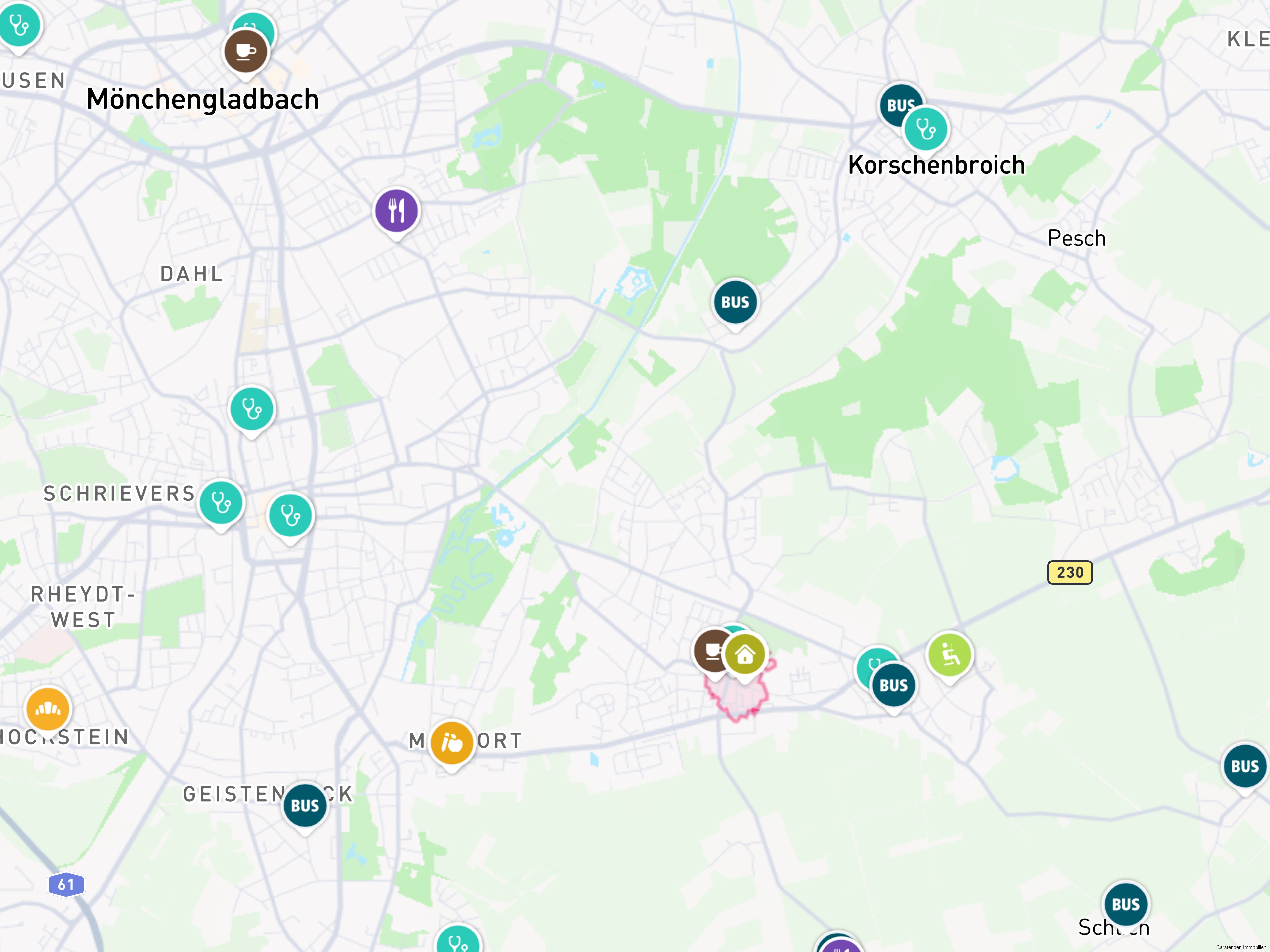 Ihr neues Zuhause finden Sie im Osten von Mönchengladbach. Genauer gesagt in Giesenkirchen. In dem Stadtteil südlich der Zoppenbroicher Straße profitieren die ca. 9.000 Einwohner von einer guten Infrastruktur und guten Verkehrsanbindungen.