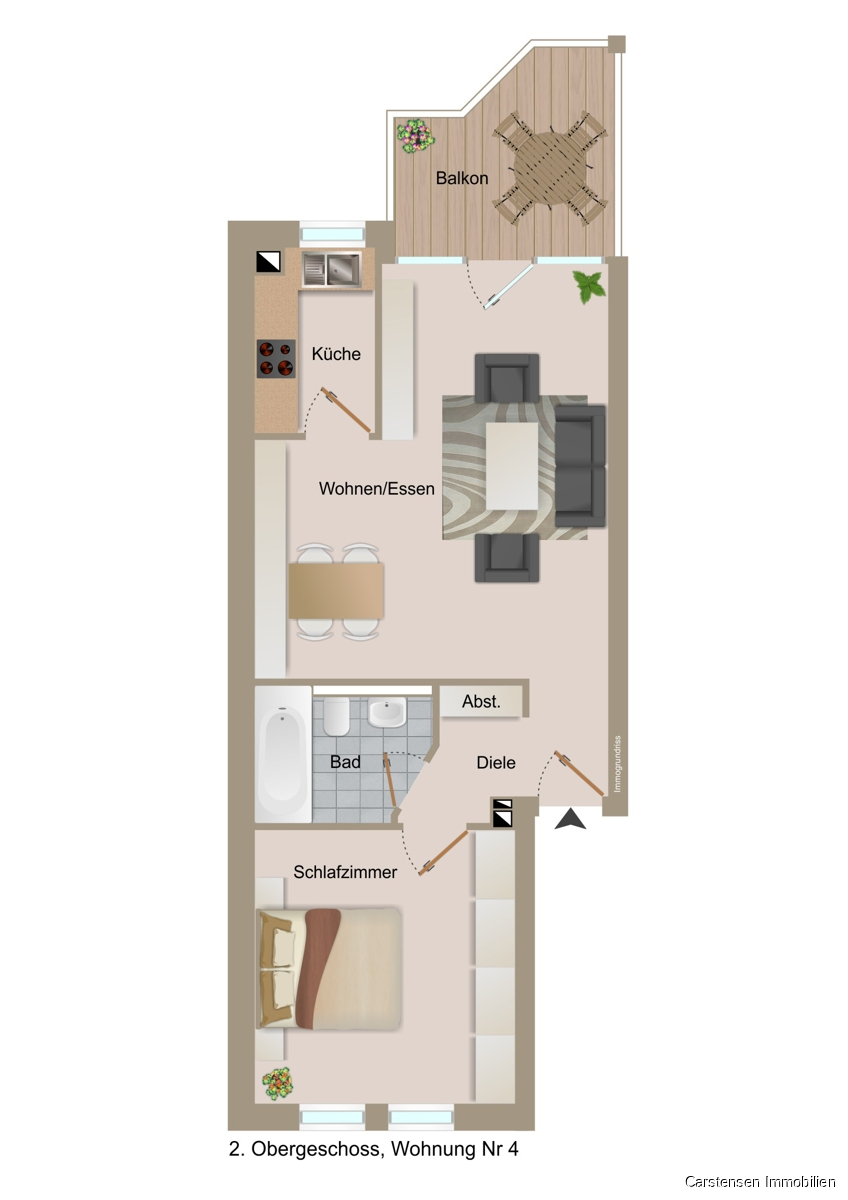 Ihr privater Logenplatz: Der angrenzende Balkon erweitert Ihr Wohnzimmer unter den freien Himmel – perfekt für den ersten Kaffee am Morgen oder das Glas Wein nach Feierabend.